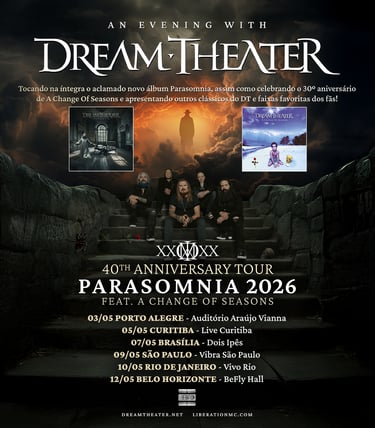 O repertório será um deleite para os fãs: a banda tocará o novo álbum Parasomnia (2025) na íntegra, celebrará os 30 anos do icônico EP A Change of Seasons e ainda desfilará os maiores clássicos de seus 40 anos de carreira. Os ingressos já estão à venda para as seis cidades confirmadas.