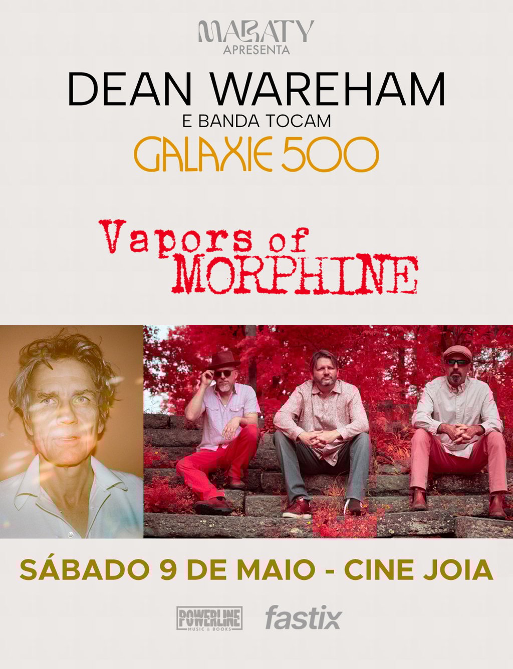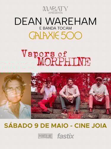 No dia 9 de maio de 2026, o Cine Joia será palco de uma noite dedicada às linhagens mais influentes do rock alternativo norte-americano. O evento reúne o Vapors of Morphine, que mantém vivo o legado sonoro do lendário Morphine, e Dean Wareham, apresentando um setlist especial focado em sua ex-banda, o Galaxie 500.