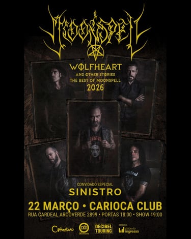 Os lobos lusitanos estão de volta! No dia 22 de março de 2026, o Carioca Club será palco de uma celebração histórica: o Moonspell retorna ao Brasil para comemorar as três décadas de Wolfheart, seu lendário álbum de estreia.
